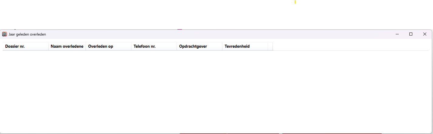 | Notificaties | Weergave van de 1 jaar geleden overlenen (voor de ingelogde uitvaartverzorger) |