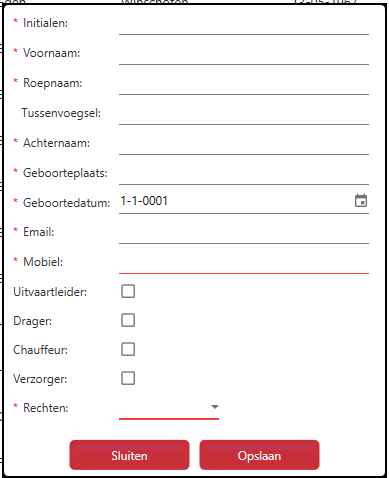 Vul de gevraagde gegevens in. Let op: vink de juiste checkboxes anders komen de werknemers niet voor in de verschillende selectieboxen. Zet de rechten van de medewerker goed, dit bepaald wat de gebruiker kan doen en mag zien binnen het systeem.