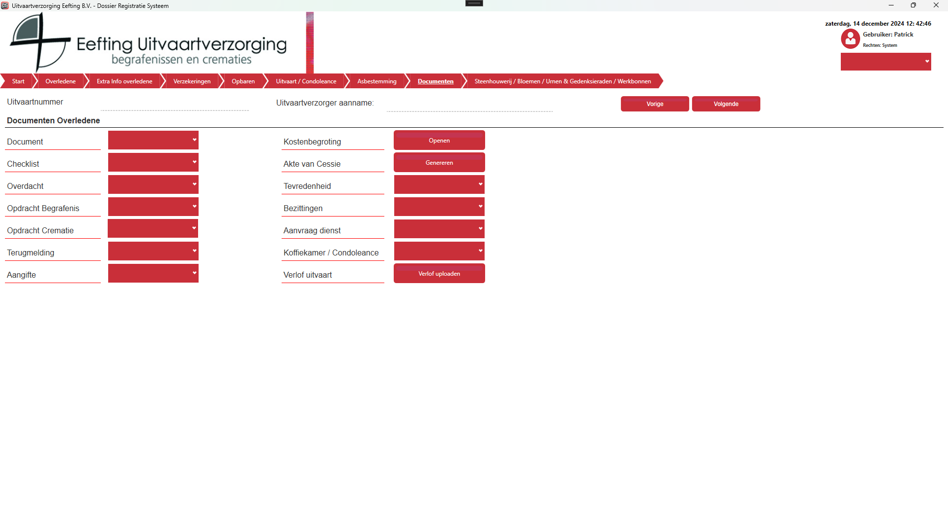 Alle documenten worden gegenereerd vanuit de applicatie. Per document type heb je een aantal keuzes;