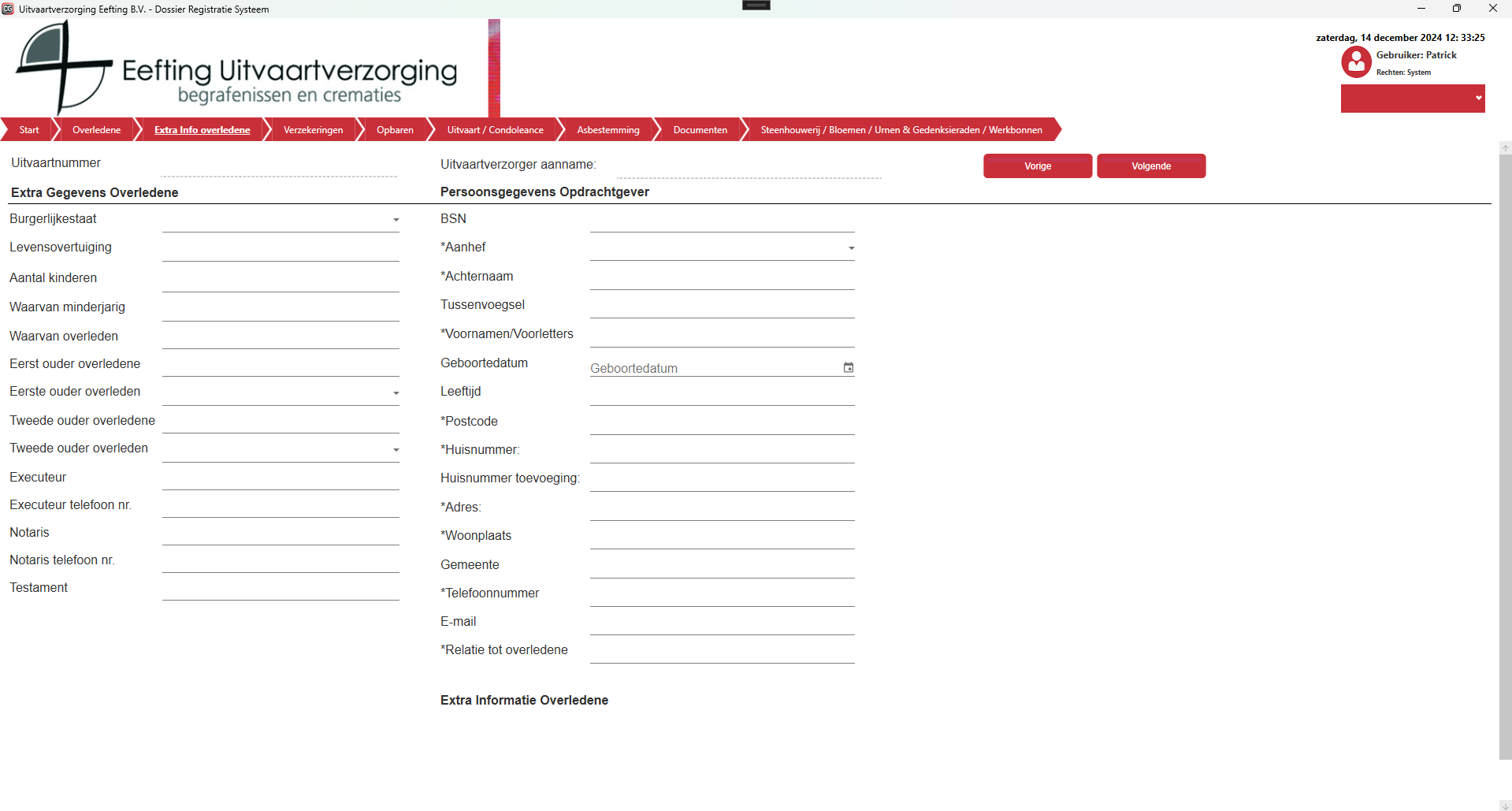 Onder het vak Extra Informatie Overledene staat de knop Extra Contactpersoon / Opdrachtgever