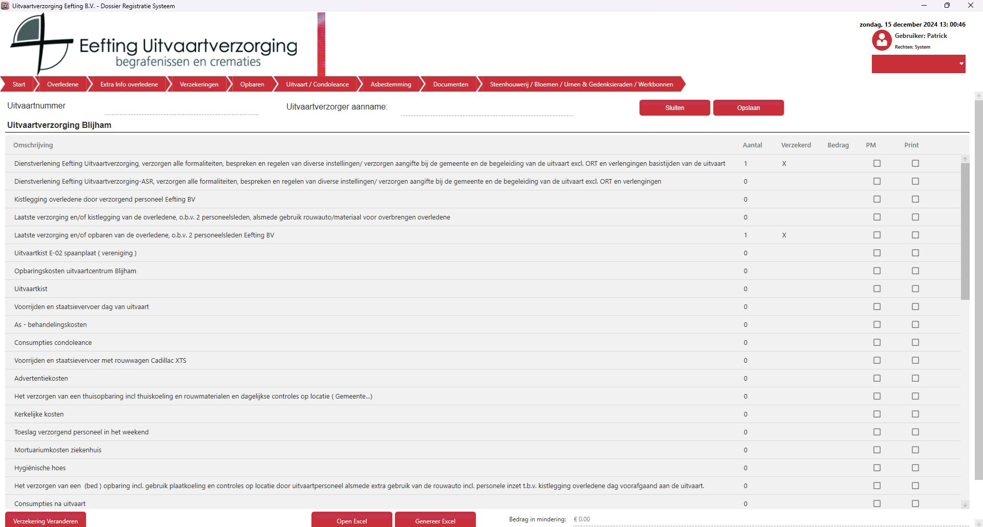 | Zet een vinkje als aantal leeg is, Verzekerd leeg is, Bedrag leeg is en PM niet aangevinkt is, maar toch op het Excel formulier moet komen. |