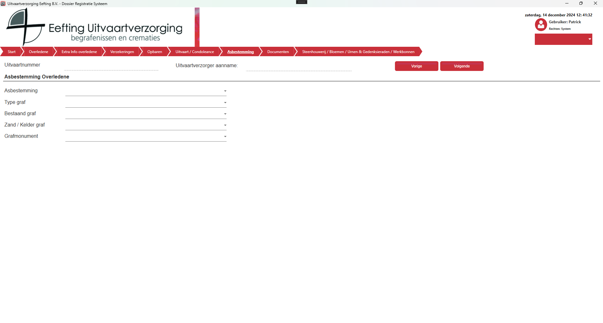 De opties in de dropdown boxen van asbestemming kunnen worden aangevuld via beheer.