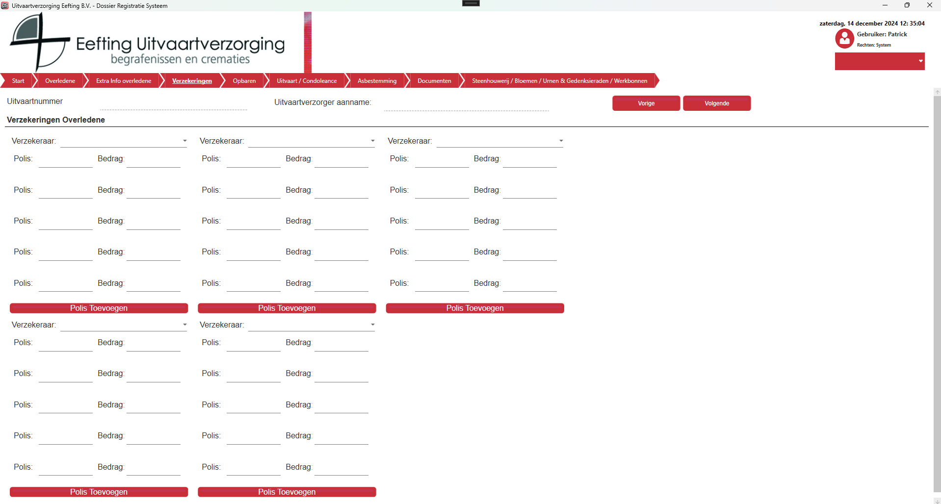 Per overledene kunnen er vijf verzekeraars gekozen worden, per gekozen verzekeringen komen er standaard vijf polissen, in gevallen dat dit niet genoeg is dan maak dan gebruik van de knop Polis Toevoegen.